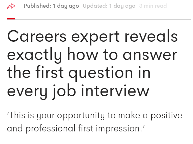 “How are you(你好吗?)”通常是每次工作面试时你都会被问到的第一个问题。