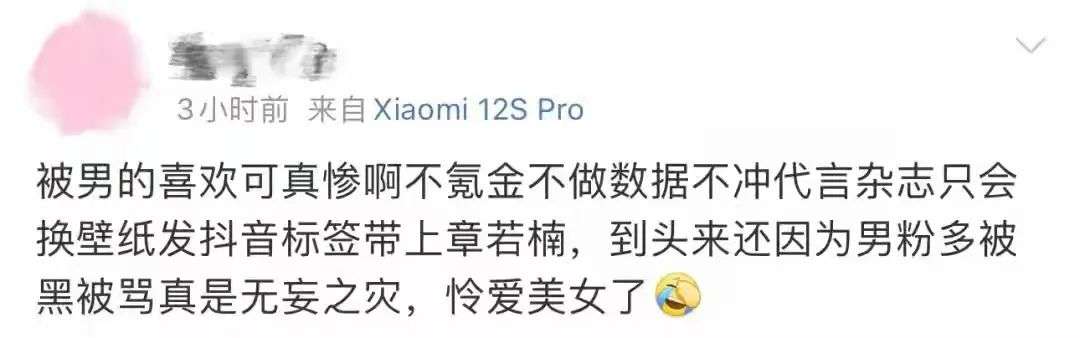 对此,不少人觉得章若楠太倒霉了,被什么样的人喜欢又不是她自己能决定的,符合男性审美不是她的错,如果可以的话,没有人不想多吸一些对自己事业有助力的粉丝吧。