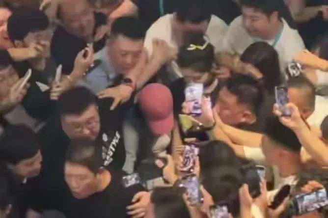 收藏章若楠见面会被猥琐男围堵,放眼望去全是男的!