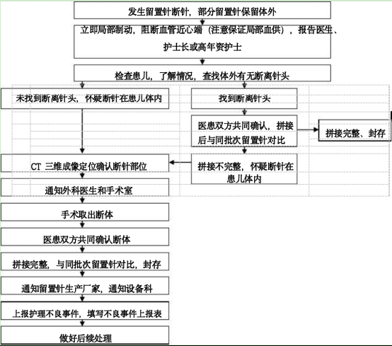 因为留置针导管断裂事件较为罕见,医护人员的处置也都是摸着石头过河。紧急处理机制的缺失延误了取出断管的最佳时机。