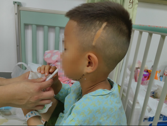 手术成功第二天晚上,和儿子挤在狭窄的病床上,洪婷婷睡了9个月来最踏实的一觉,夜里护士几次来给童童测体温她都没醒。留置针导管还在童童体内时,每一夜,他都要枕着妈妈的手睡觉,头都睡偏了。每天早上醒来,洪婷婷整条手臂都是酸麻的。取出手术之后,童童自己改掉了这个习惯。洪婷婷觉得,儿子一直能感受到右侧颈部导管的存在,只不过他太小了,不会表达。