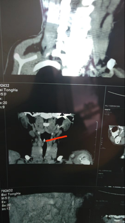 接下来医生的话却给他们当头浇了一盆冷水。因为导管位置特殊,颈部神经比其他部位复杂,可能造成的损伤风险也更大,“手术取异物损伤较大”,如果手术过程中出现意外有可能会造成面瘫。“建议密切观察随诊。”