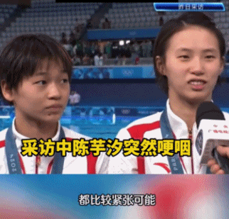 赛后采访中陈芋汐被记者问到双眼湿润,全红婵在一旁暖心贴贴,大方索吻。