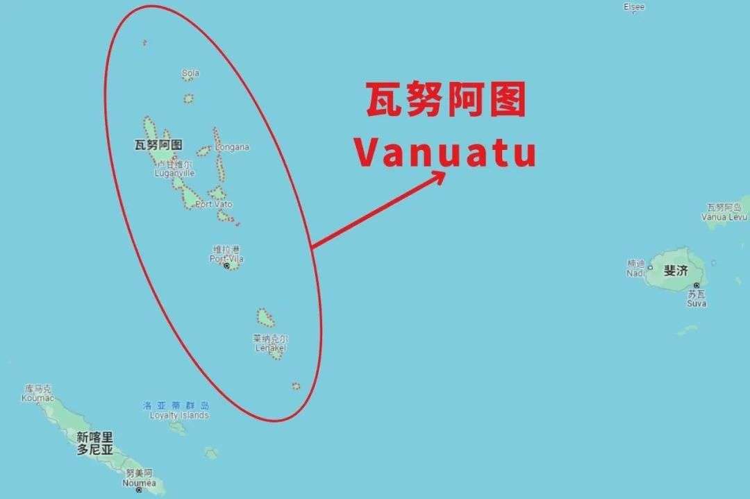 位于南太平洋西部,属于美拉尼西亚群岛,地处澳大利亚布里斯班以东1900公里,斐济以西800公里,新喀里多尼亚以北230公里,所罗门以南170公里,首都维拉港。