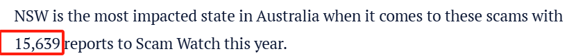 其中,新州是澳大利亚受影响最大的州!提交给Scam Watch的报告有15,639份...