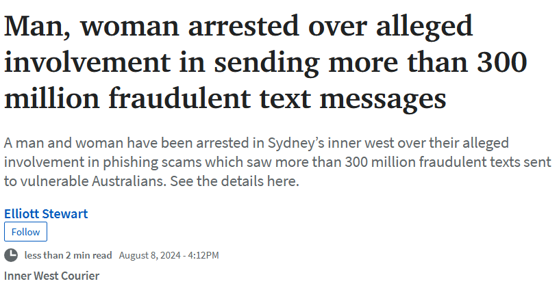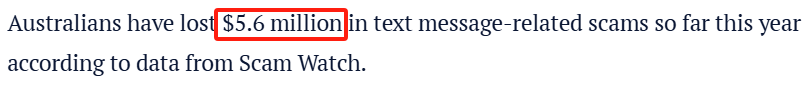 根据Scam Watch的数据,今年一直到7月为止,澳大利亚人在与短信相关的诈骗中