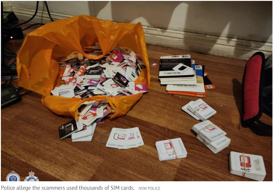 26个“多卡宝”(SIM box)、数千张手机SIM卡、500多部手机和部分礼品卡、16.6万澳元现金,以及两辆总价值33万澳元的汽车。