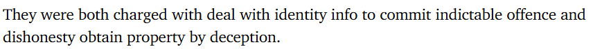 他们被带到Burwood警局接受调查,均被指控利用身份信息实施可公诉的罪行,以及通过欺骗手段获取财产。