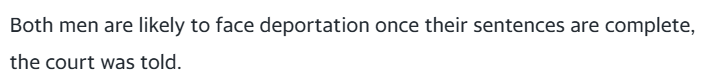法庭获悉,两人服刑完毕后可能会被驱逐出境。