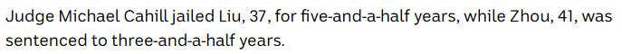 因此,法官Michael Cahill的判决并未以Liu和Zhou是否知道资金来源的情况来量刑,因为二人显然知道来源可能“违法”,但还是帮忙“洗钱”,