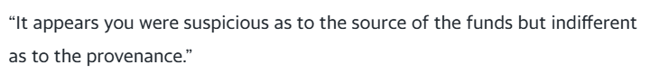 “你们两人经手处理的金额都是惊人的,你们对资金的来源心存疑虑,但却漠不关心。”