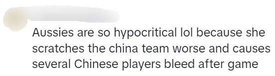 这位澳大利亚选手太虚伪了,她把中国队抓伤得更厉害,赛后导致几名中国球员流血,她提都没有提