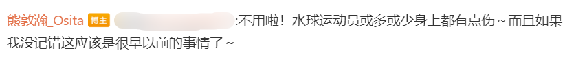 一位美国网友在中国女子水球队队员熊敦瀚的微博下留言问起这个事情。