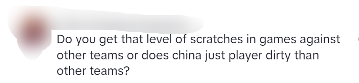 我需要更多信息。如果有料,就向全世界公布内幕消息。讲真,被抓伤只是中国队特有的问题吗?🤔
