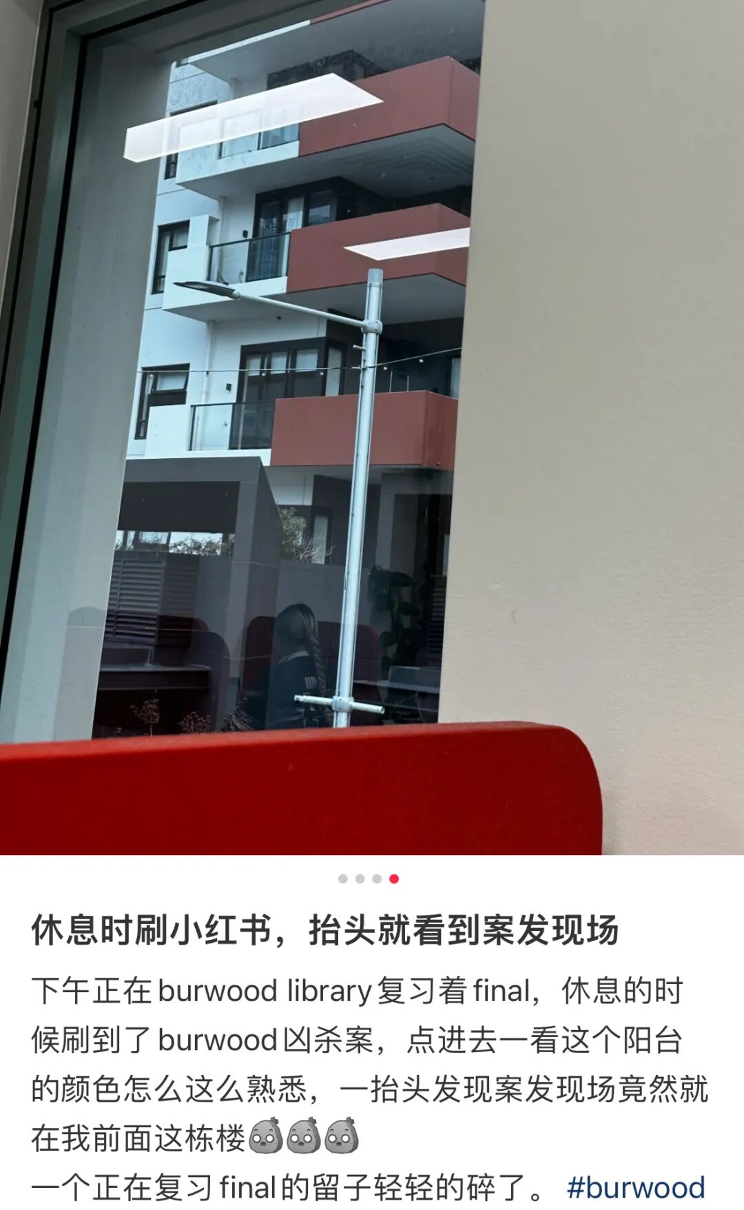 有在现场居住的同为留学生的小红书网友发帖: