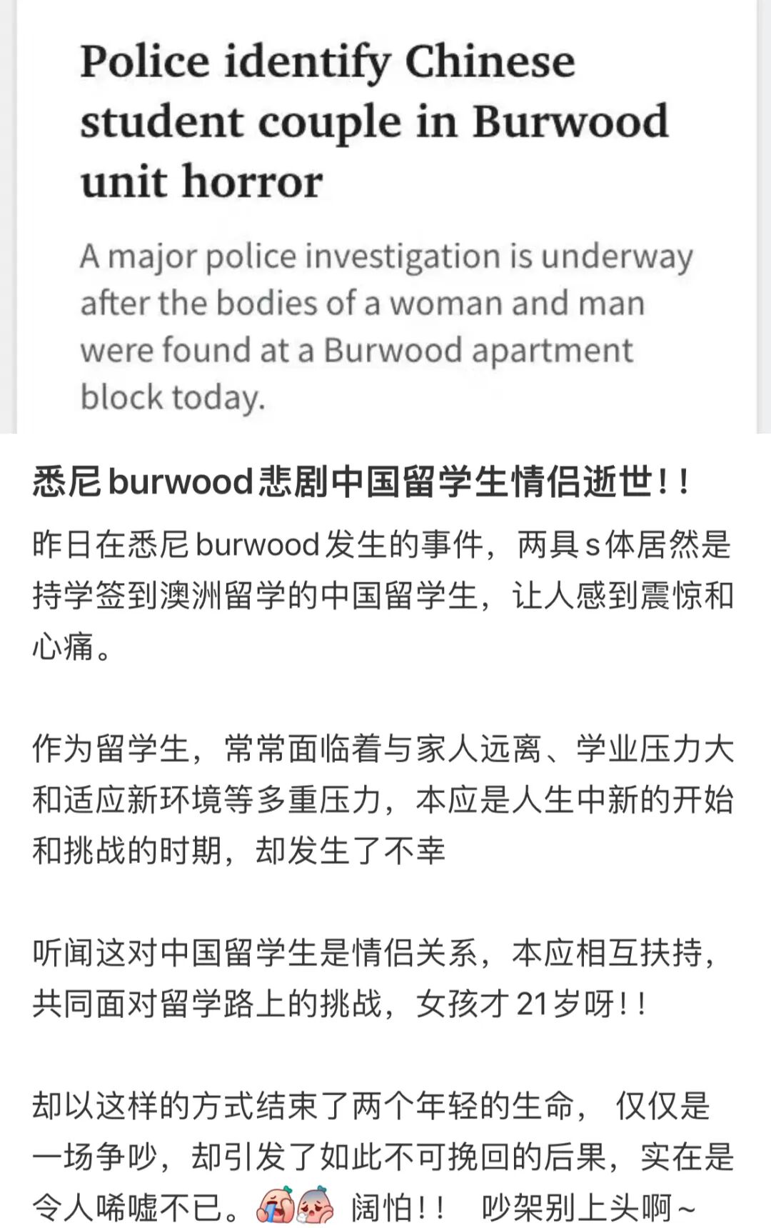 突发!悉尼华人区发生命案,两名死者皆为中国留学生!身份刚刚确认了...