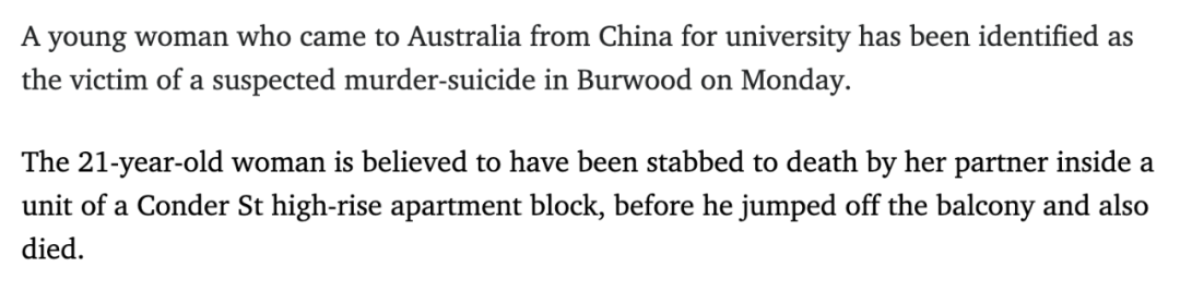 收藏澳洲中国留学生情侣惨死华人区!悉大女生遭男友捅杀,男生尸体半裸!原因彻底曝光...留学&华人圈热议