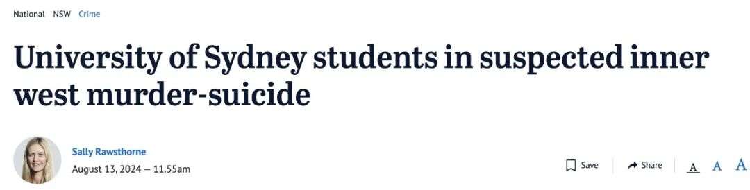 根据《悉尼晨锋报》的最新消息,已确认两名死者均为悉尼大学的中国留学生。