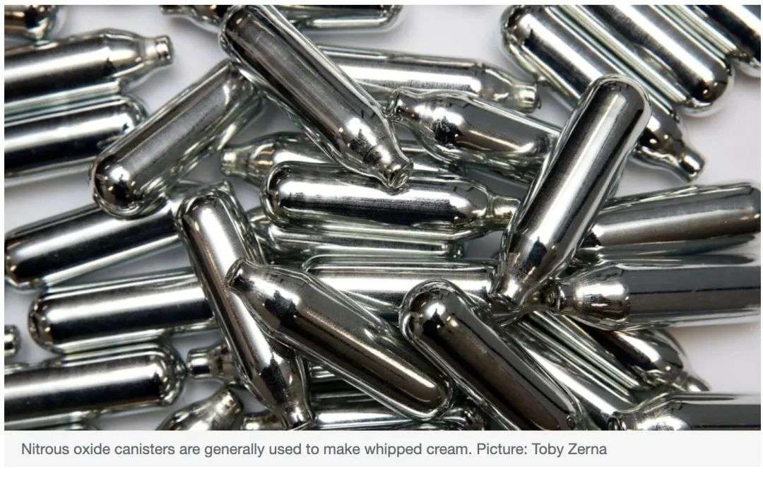 而后在调查中,新州警方在何伟杰家中发现了数百个空的一氧化二氮罐。