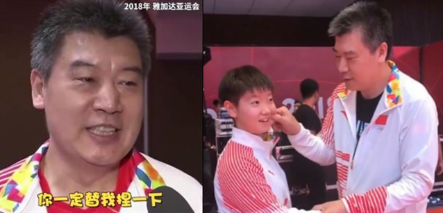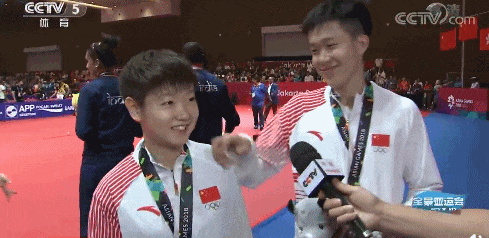 赛后记者采访,王楚钦轻碰了下孙颖莎的脸。