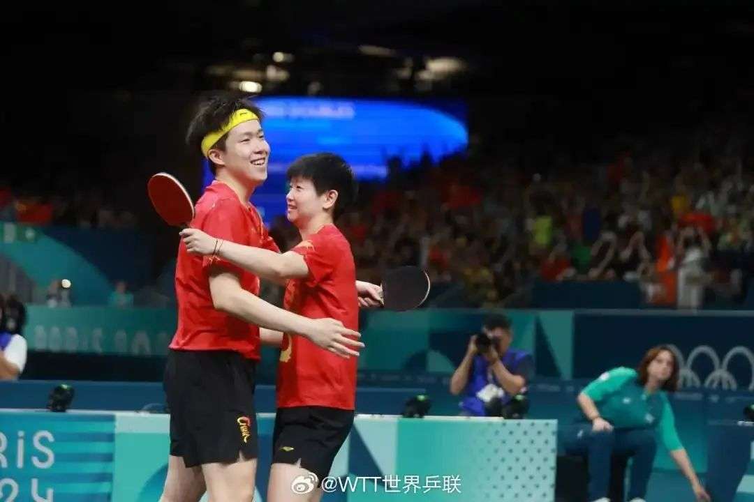 最后一球落地,孙颖莎俯身高喊,王楚钦振臂高呼。