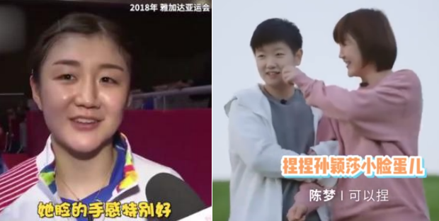 孙颖莎还在一段视频里说捏脸有技巧,展示了自己的“捏脸四部曲”。