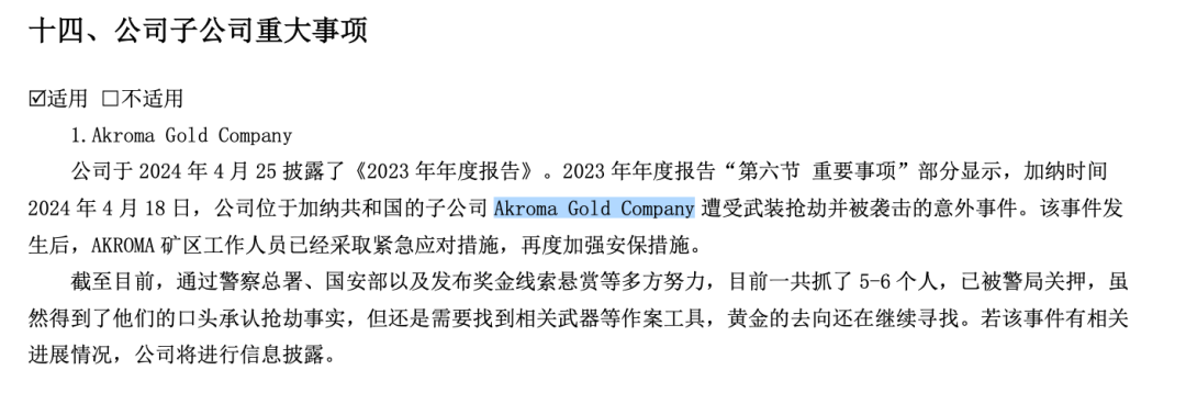 晓程科技4月25日披露的2023年年报显示,加纳时间2024年4月18日,清晨5点20左右,公司位于加纳共和国的子公司Akroma Gold Company遭受武装抢劫并被袭击的意外事件。