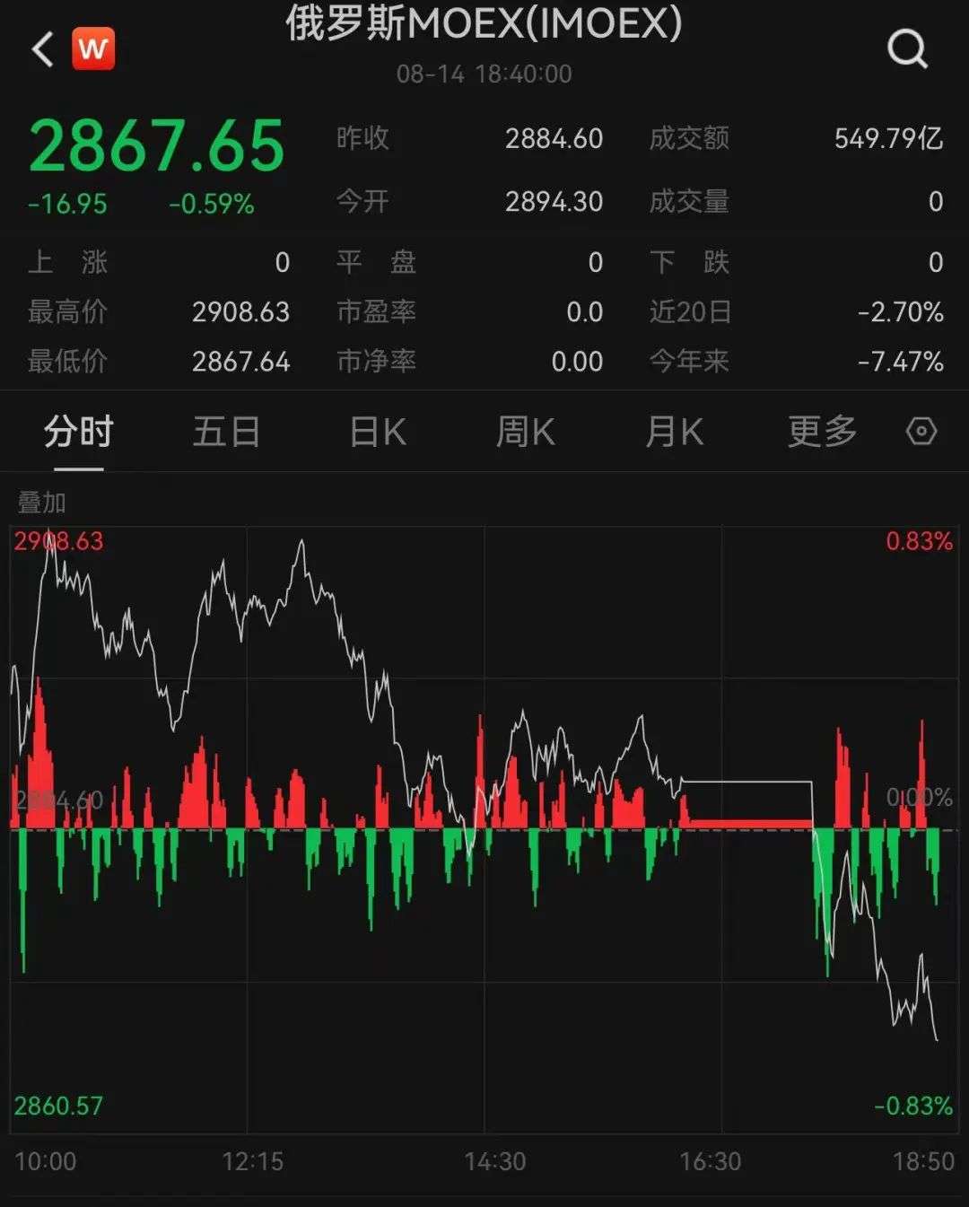 央视新闻8月14日晚间消息,当地时间8月14日16时18分,俄罗斯莫斯科交易所股票暂停交易。