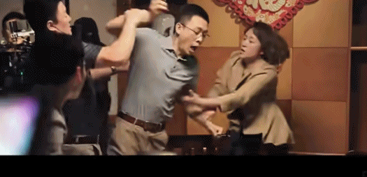 与张译饰演的校领导从和谈变斗殴这场戏,完全是她即兴而来,顺着角色个性所做的反应,没料到效果奇佳。