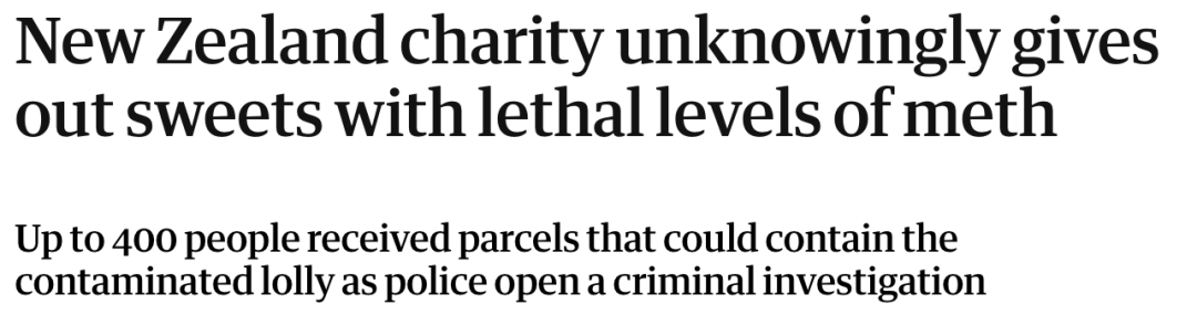 据悉,糖果是2人的同学——另一名中学生带到学校的。该事件也引发了人们对毒品低龄化的担忧,毒品糖果或许会在不知不觉中进入孩子的口中。更夸张的是,新西兰一慈善组织居然收到了民众捐赠的冰毒糖果,目前已经作为食品发放给了多个家庭,或有百人受影响。