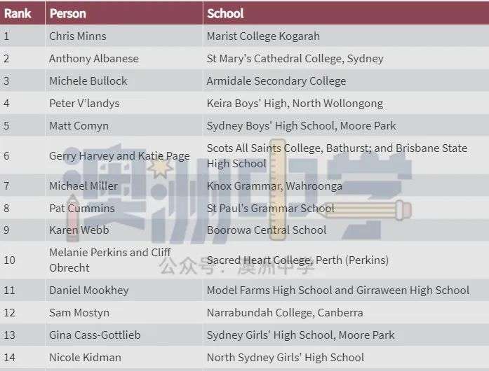 排名第二的则是澳洲总理Anthony Albanese,就读于悉尼市中心的天主教学校St Mary's Cathedral College;