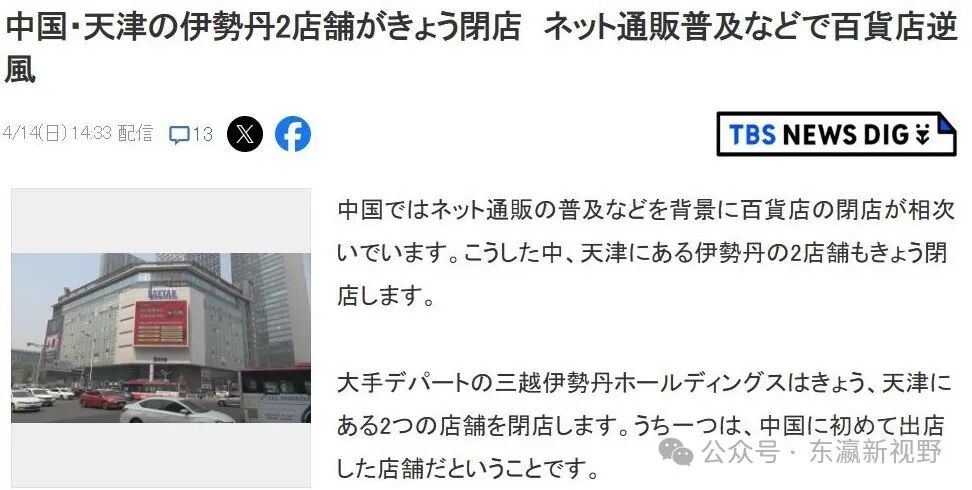 今年4月,日本TBS电视台报道伊势丹天津店闭店