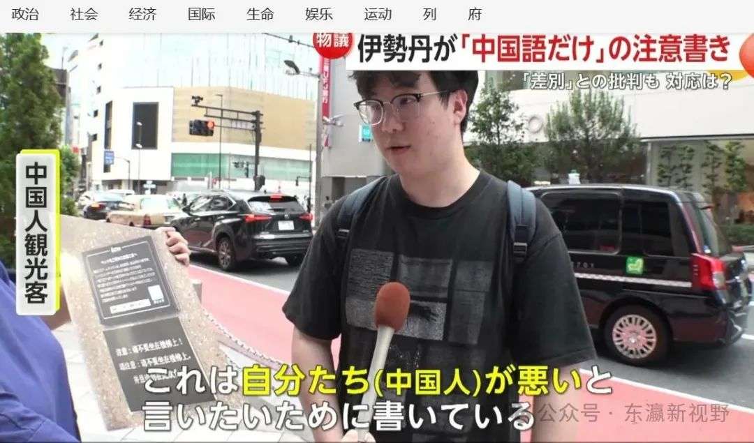 富士电视台采访中国游客,都认为伊势丹的此举不妥