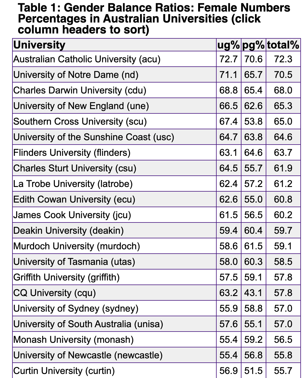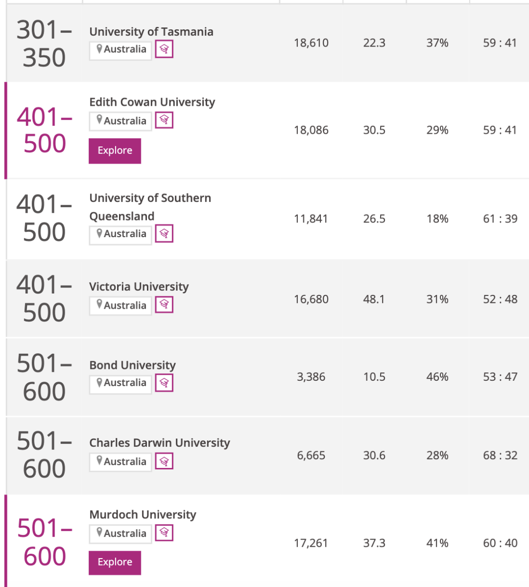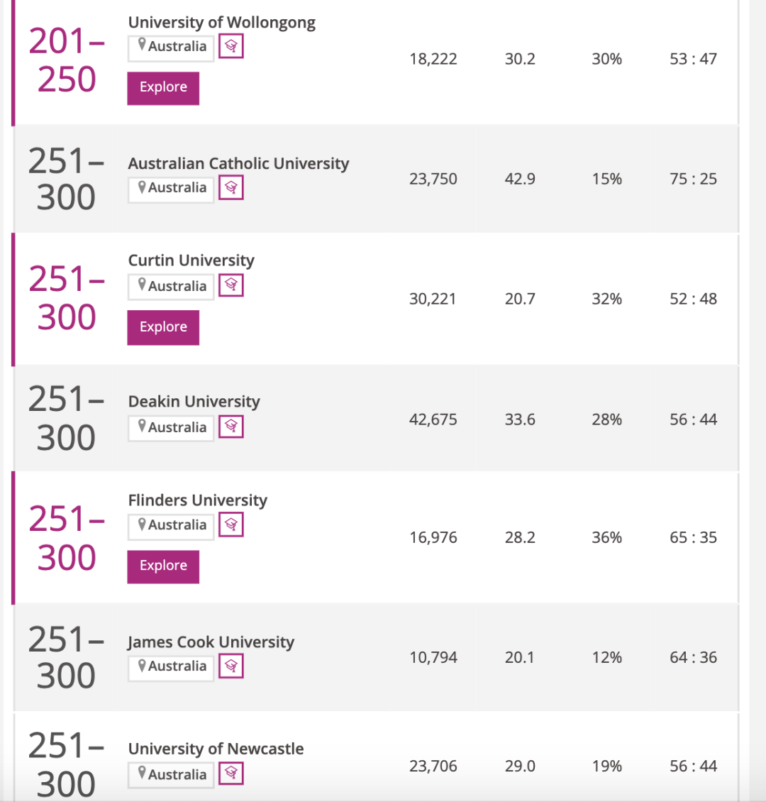 综合实力排名前100的澳洲大学们,男女比例如何呢?