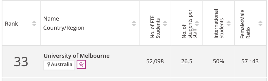 同样是一所墨尔本的学校,与墨大的比例相同,看来在墨尔本留学的小伙伴们,真的是要落泪了。