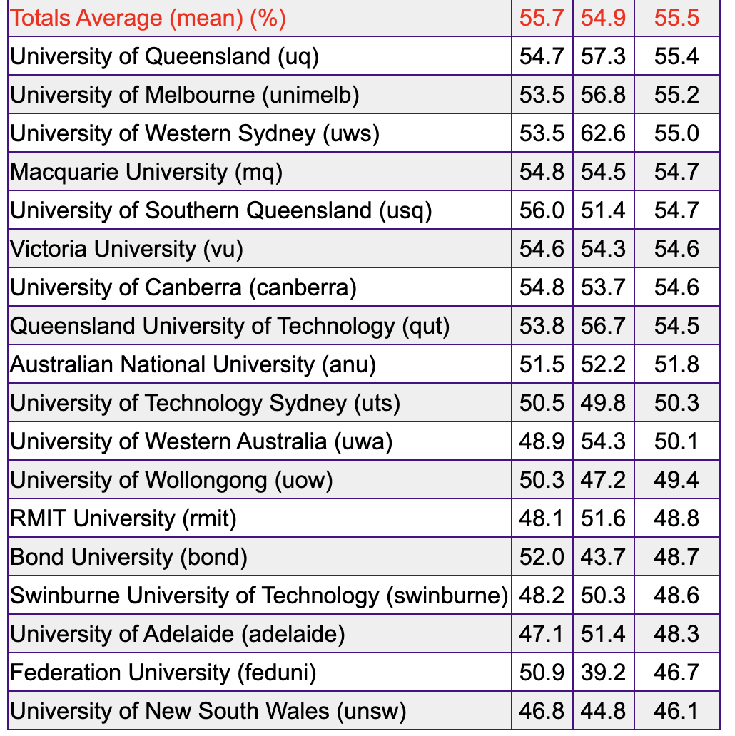 而澳大利亚高校中,女生平均占比55.7%,也就是说,总体来看,女生还是稍多于男生的。