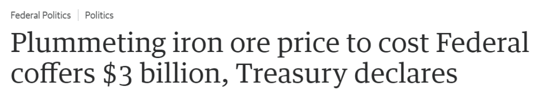 近日澳大利亚财政部警告称,中国对铁矿石需求的直线下降将使澳大利亚损失超过 30 亿澳元。