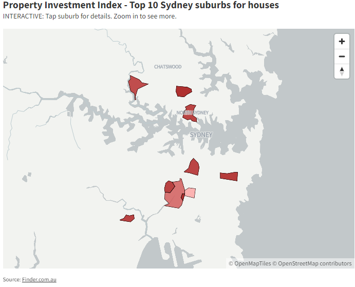 Finder 对每个城市市场进行了调查,以更高的租金回报和资本增长前景来衡量,结果显示,最适合投资者的郊区大多位于悉尼内南区。