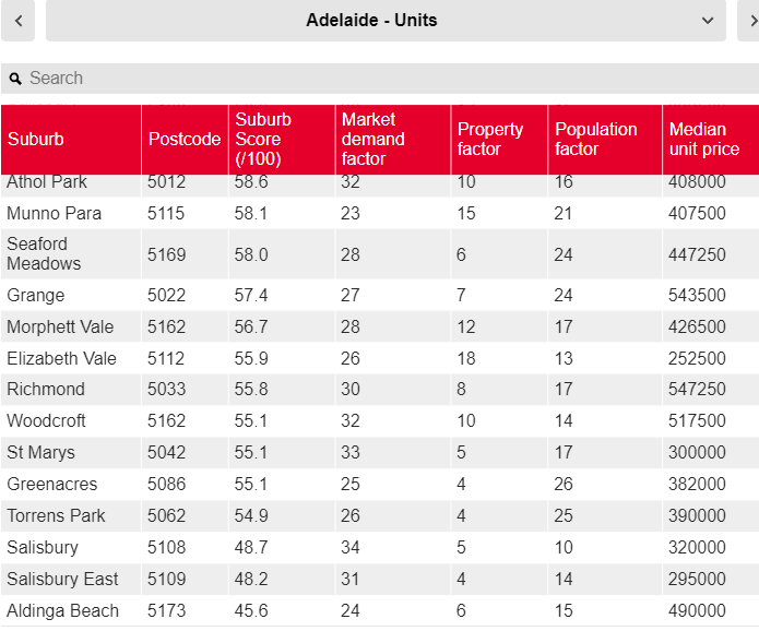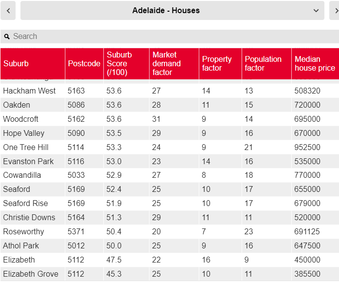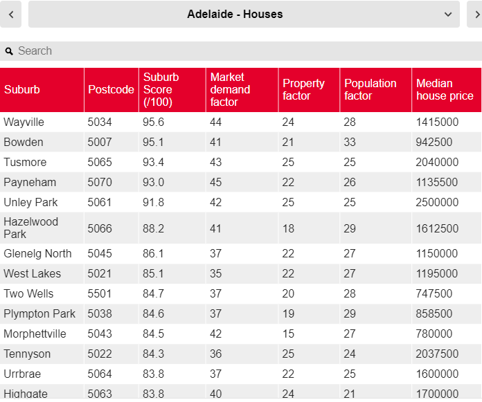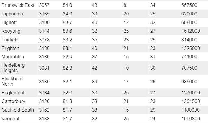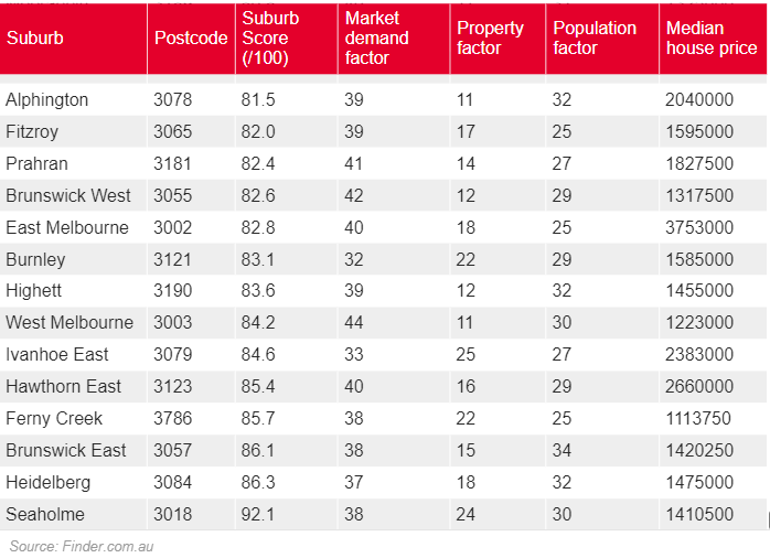 Finder通过对墨尔本超过500个郊区和地区进行综合分析,考量了市场需求、人口增长趋势及历史价格数据,为每个区域打出了最高100分的评分。