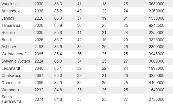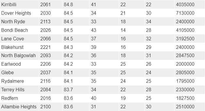 在独立屋,Seaholme凭借其卓越表现获得了90分以上的高分;