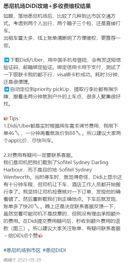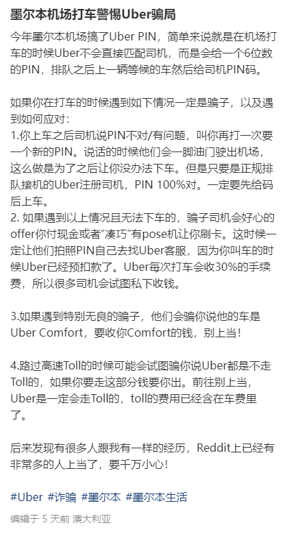 还有人表示,一定要警惕Uber或者DiDi司机的套路,特别是来澳洲旅行的游客,更需要注意这一点。