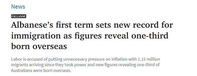 “澳联储已承认,工党领导下的移民政策加剧了通胀,导致利率上调了12次,并使澳洲民众感受到了生活成本之痛。”