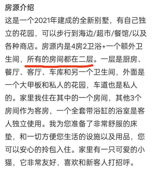 让他们意外的是,租来的房间并不在一楼,而是在与Angela同住的二楼,这与合同描述不符。“虽然不太符合预期,但我们也只能将就住下,”Chloe说道。