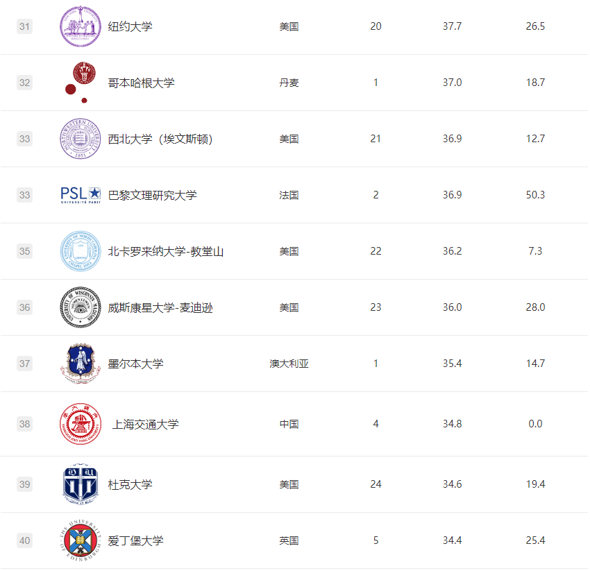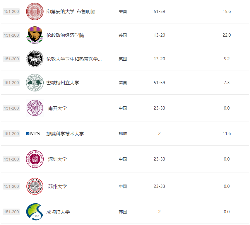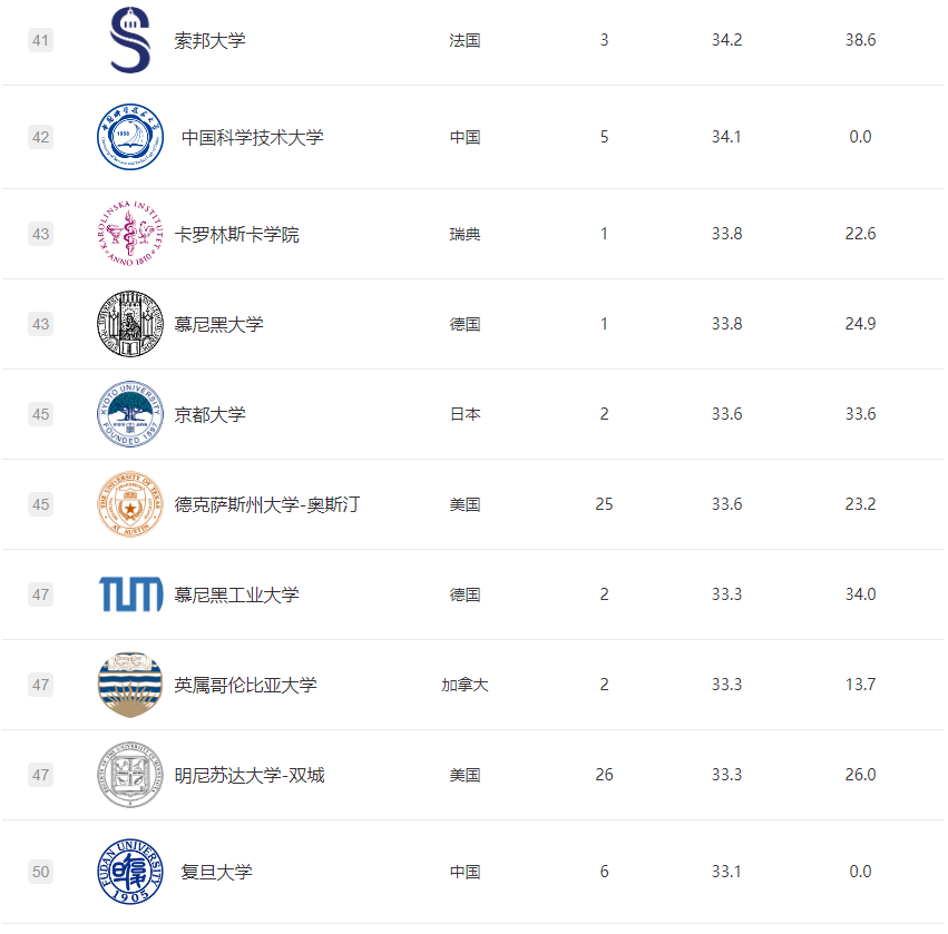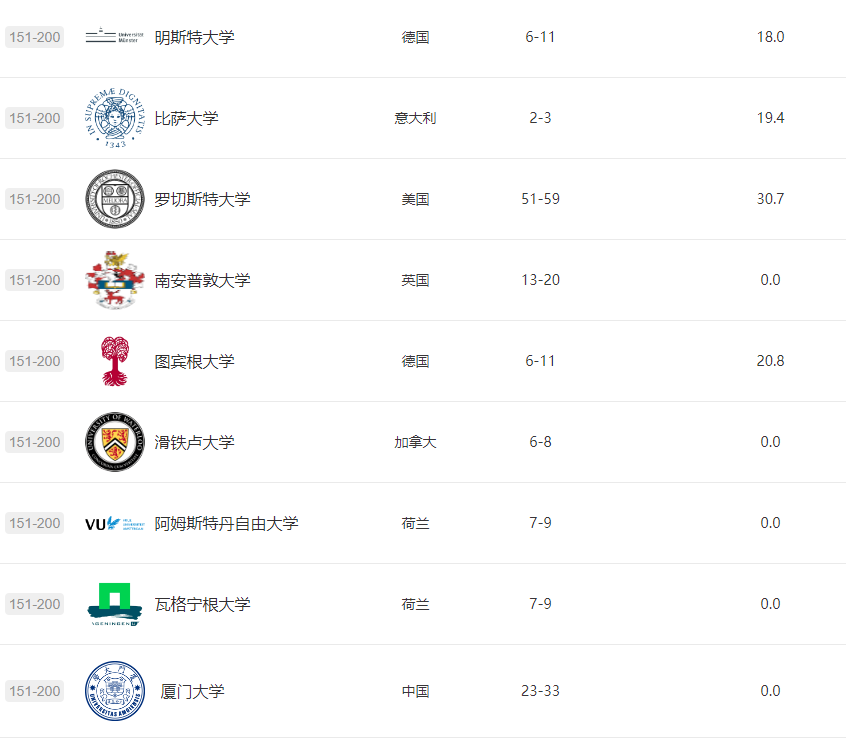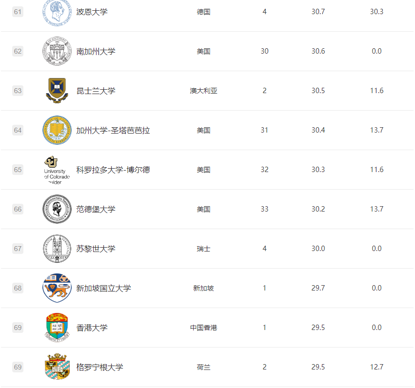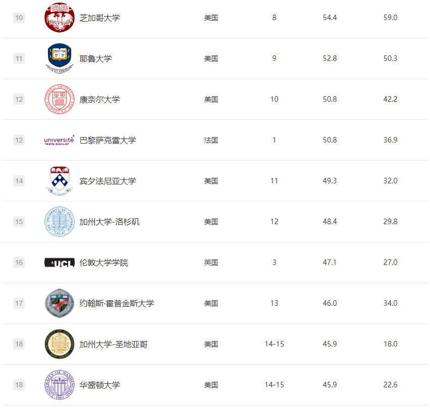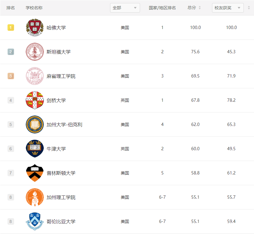 相比之下,美国学校在本次排名中继续展现出强大的学术实力。哈佛大学连续22年稳居榜首,斯坦福大学和麻省理工学院紧随其后,形成了稳固的前三甲。上榜的还有加州大学伯克利分校(第5)、普林斯顿大学(第7)、加州理工学院和哥伦比亚大学(并列第8名)以及芝加哥大学(第10名)