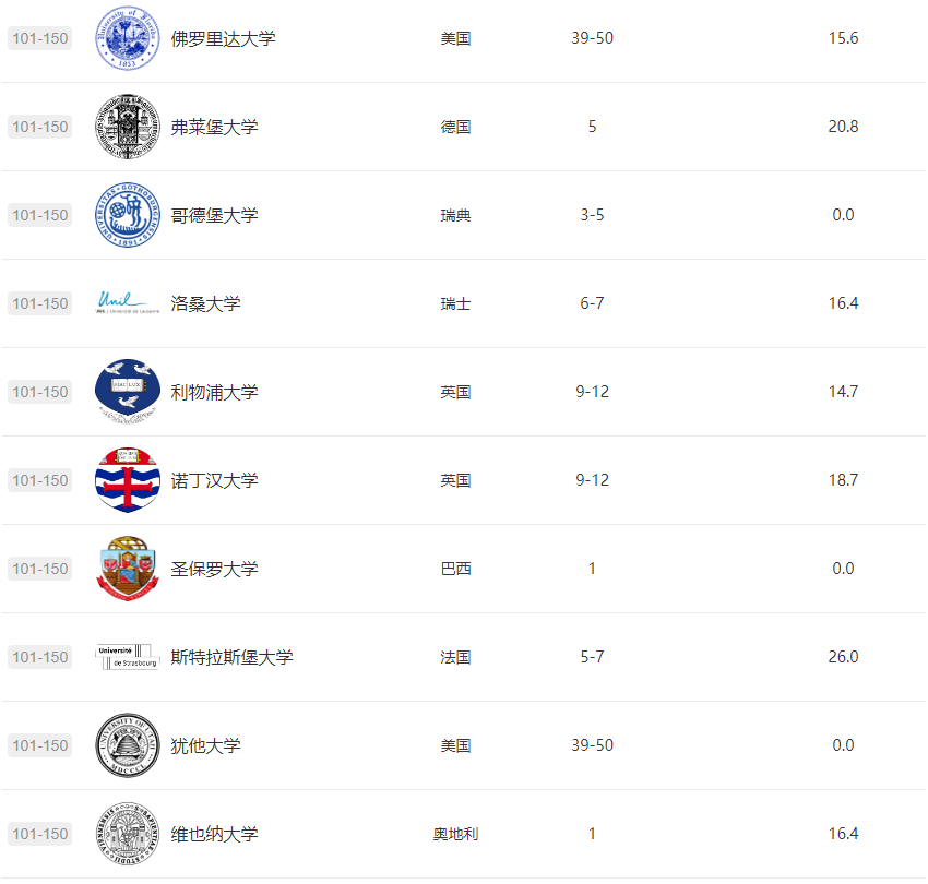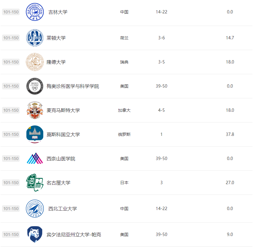 而关于2024年软科排名前101-300的学校名单如下所示: