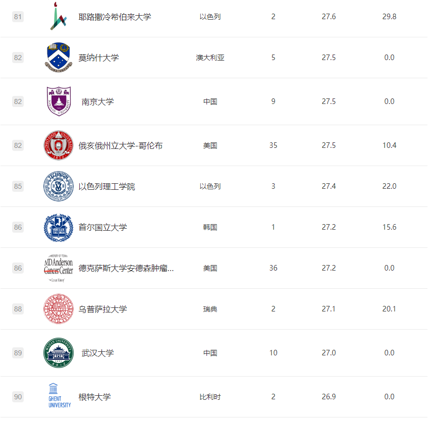 澳洲大学排名呈下滑趋势。其中全澳排名第一的墨尔本大学,由去年的第35名下降至第37名;昆士兰大学从51名下跌至63名;悉尼大学由73名下降至74名;新南威尔士大学由71下降至77名;莫纳什大学由77名下跌至82名。而去年位列第84名的澳大利亚国立大学,今年则已跌出100名之外。