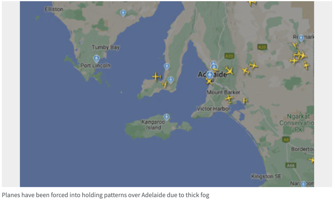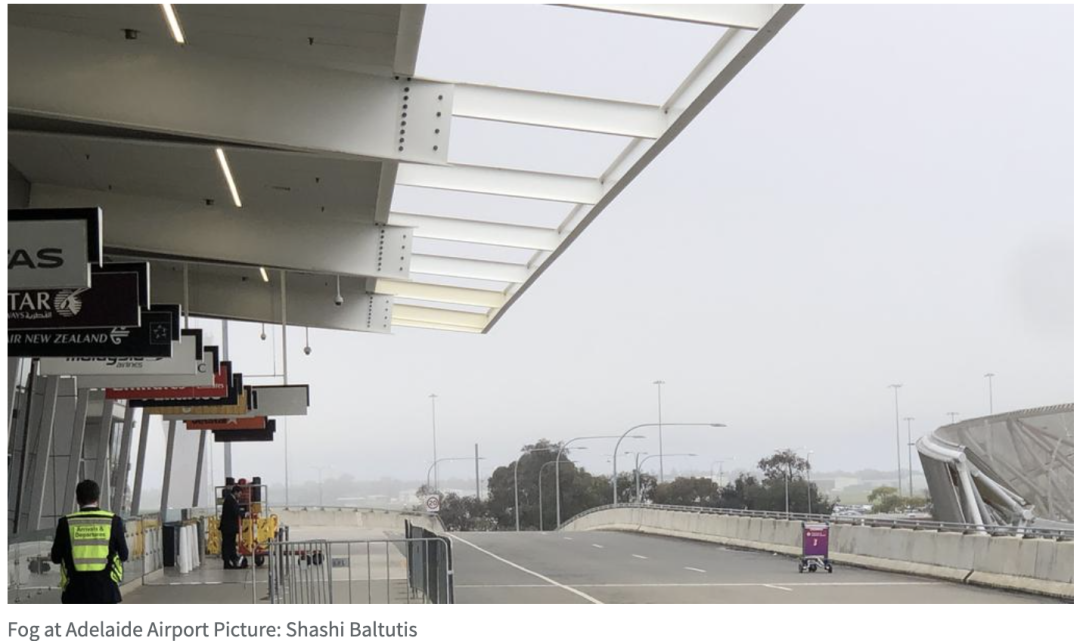 由于浓雾笼罩阿德莱德市区,阿德莱德机场再次出现多趟航班被迫改道或延误。