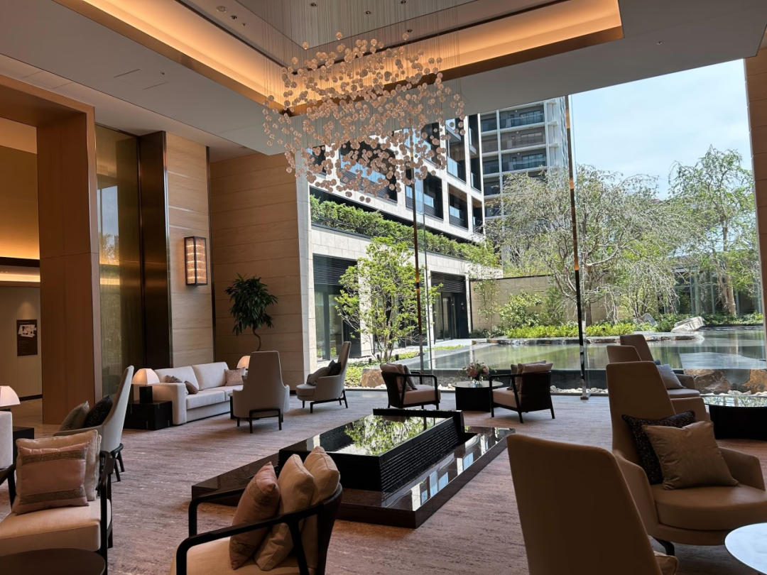 首先,刚一进门,就能看到这个不亚于五星级酒店的大堂,5米高的天花和落地玻璃墙。