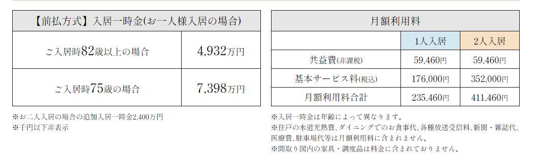 即使是最便宜的套间(42平的1LDK),一次性入住费也要4932万日元,且年龄得在82岁以上;如果入住者稍微年轻一点,入住时年龄在75岁,那么同样的一居室,要给7398万日元。