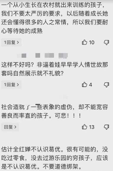 还有网友说,全红婵不懂礼貌,葛优是前辈,你是晚辈,